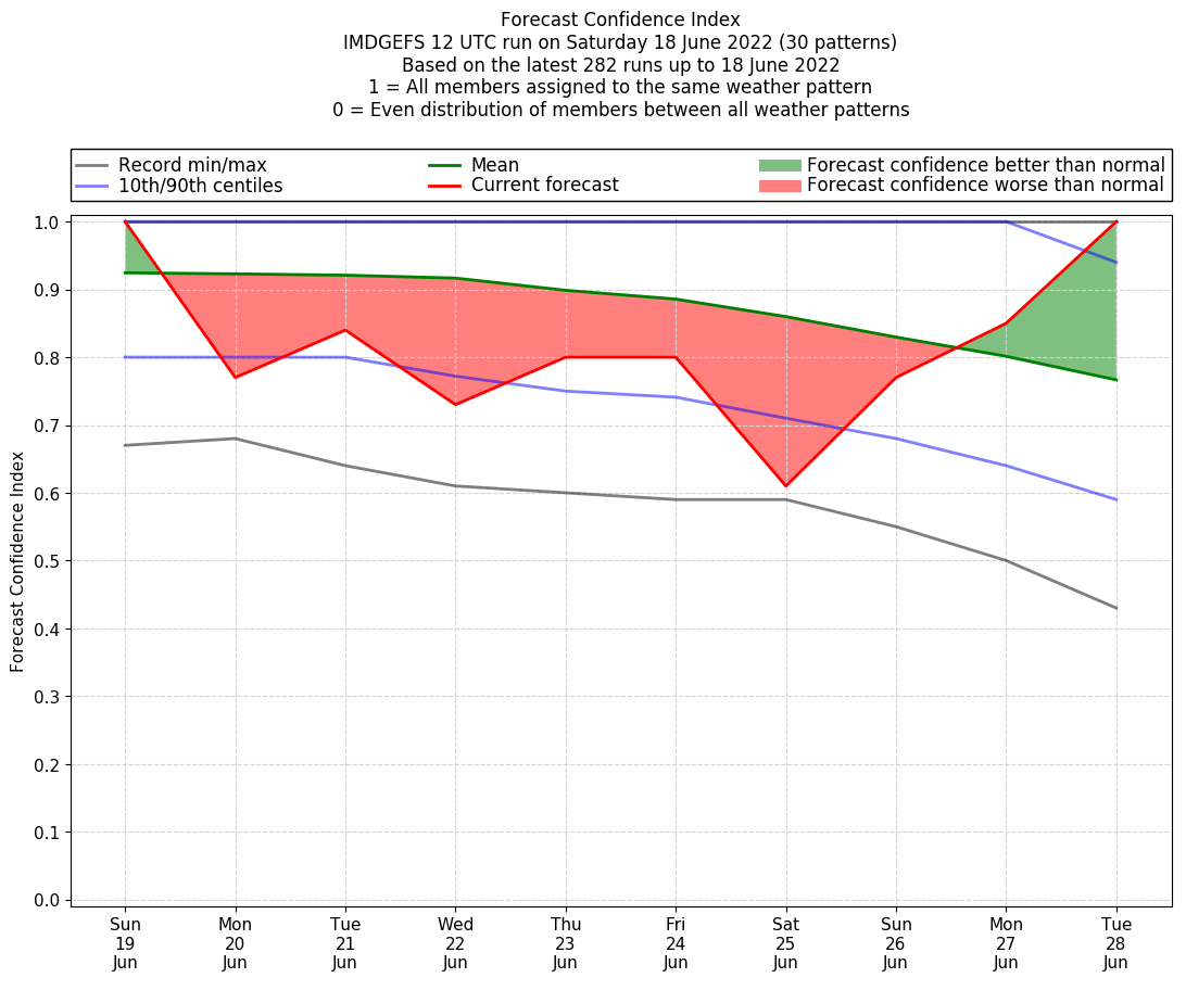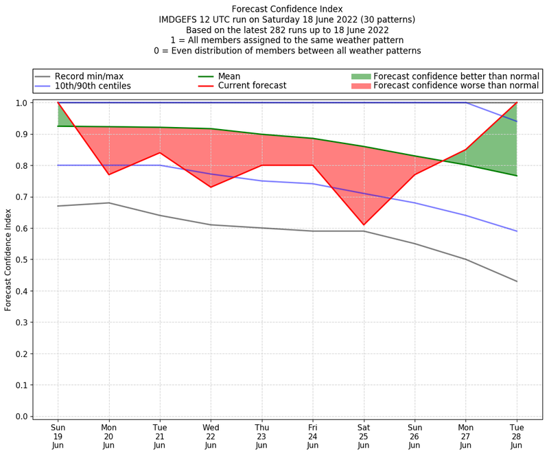 | Weather patterns typically associated with pre-monsoon tendencies over India are most likely Weather patterns 12, 13, 14, 15 and 22 (pre-monsoon) | |
