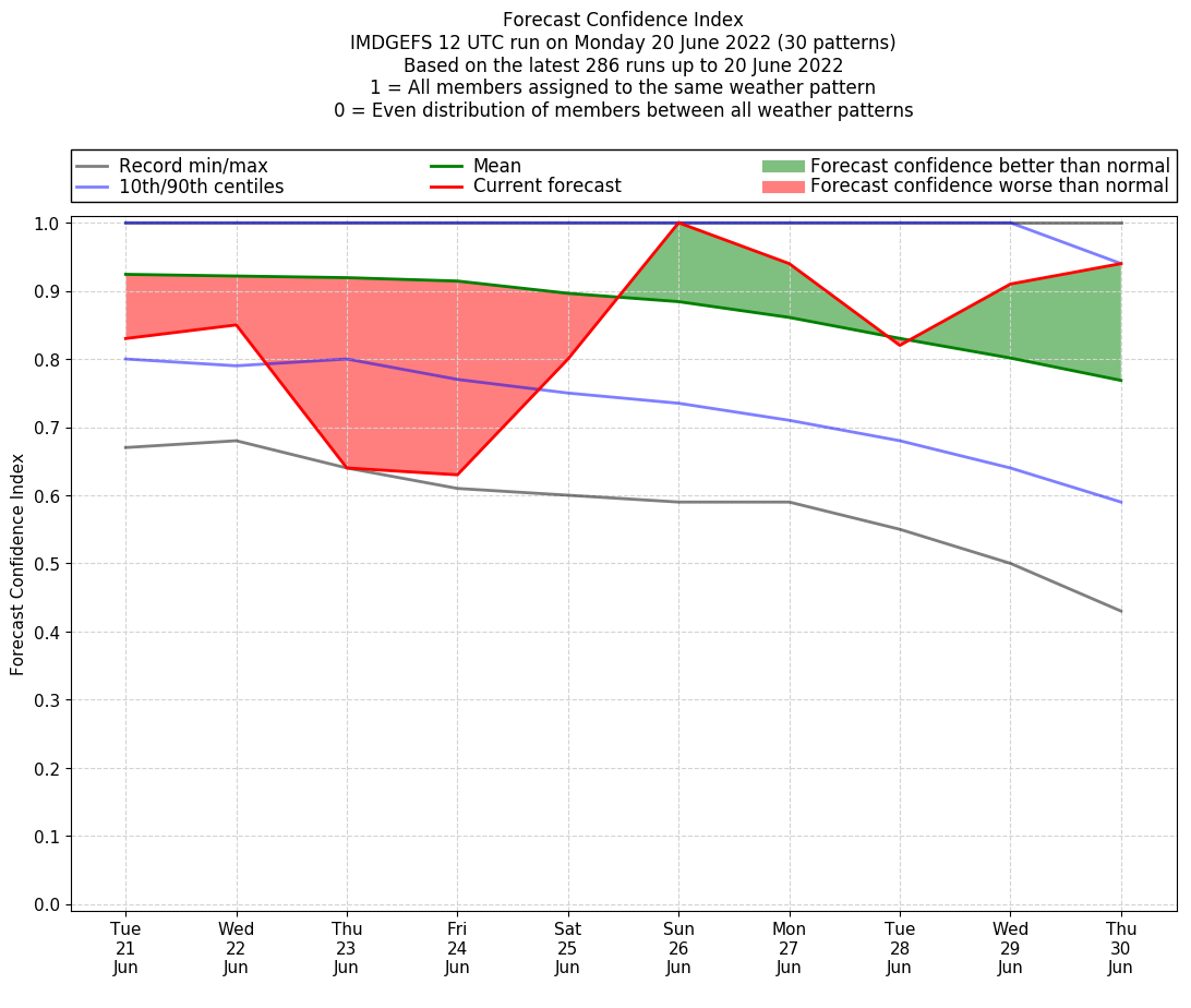 | Weather patterns typically associated with pre-monsoon tendencies over India are most likely Weather patterns 12, 13, 14, 15 and 22 (pre-monsoon) | |
