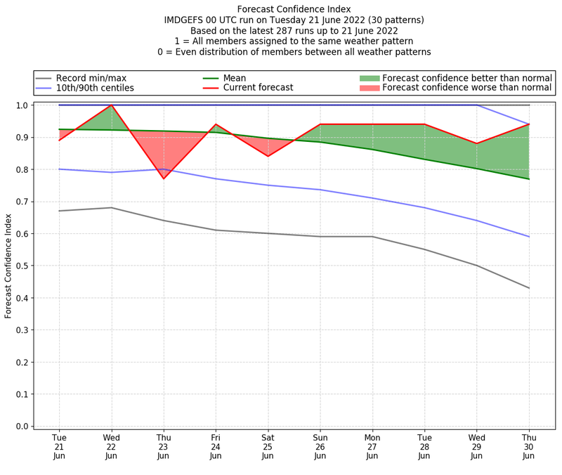 | Weather patterns typically associated with pre-monsoon tendencies over India are most likely Weather patterns 12, 13, 14, 15 and 22 (pre-monsoon) | |