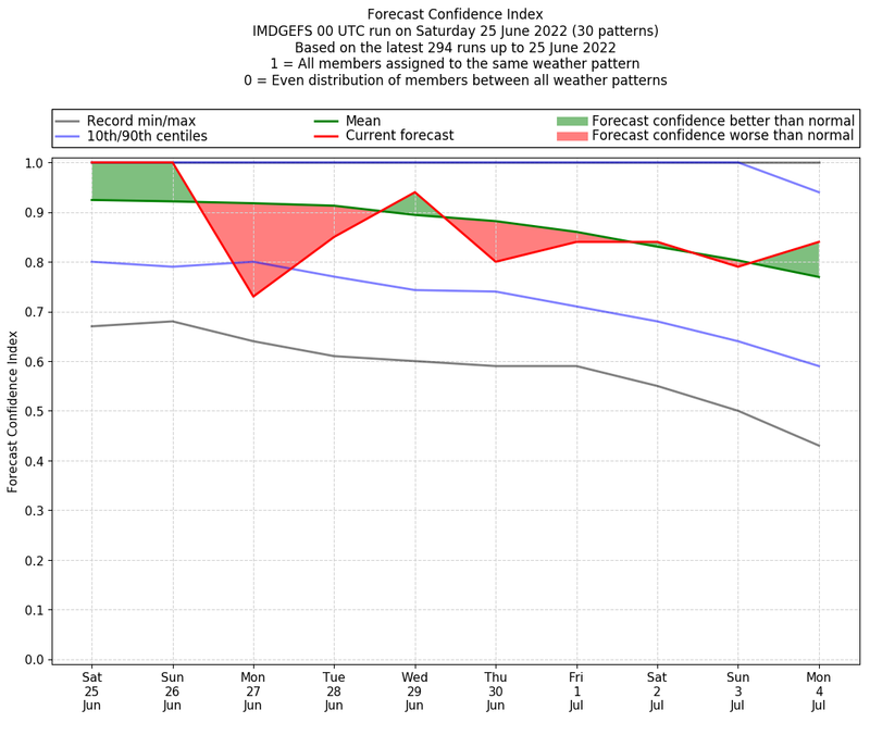 | Weather patterns typically associated with pre-monsoon tendencies over India are most likely Weather patterns 12, 13, 14, 15 and 22 (pre-monsoon) | |