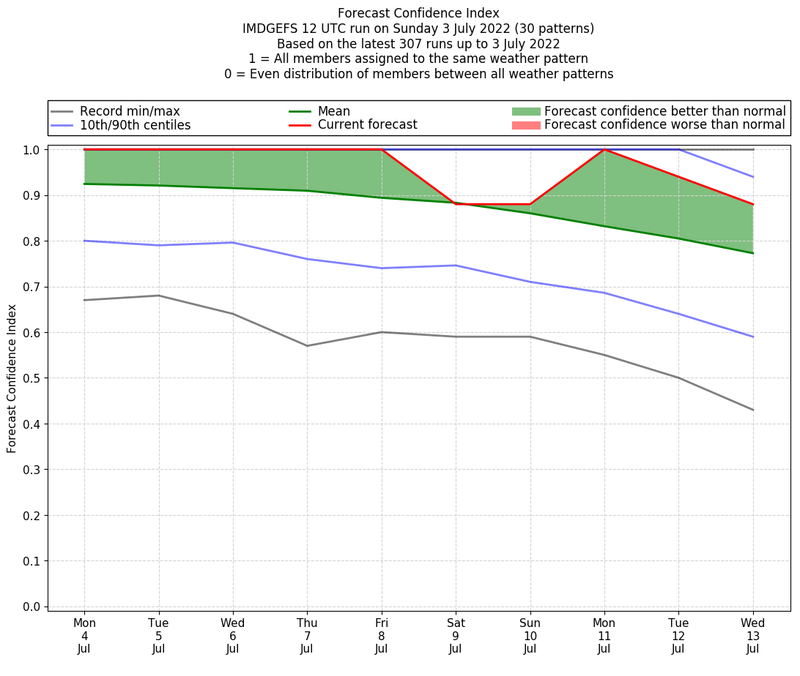 | Weather patterns typically associated with pre-monsoon tendencies over India are most likely Weather patterns 12, 13, 14, 15 and 22 (pre-monsoon) | |
