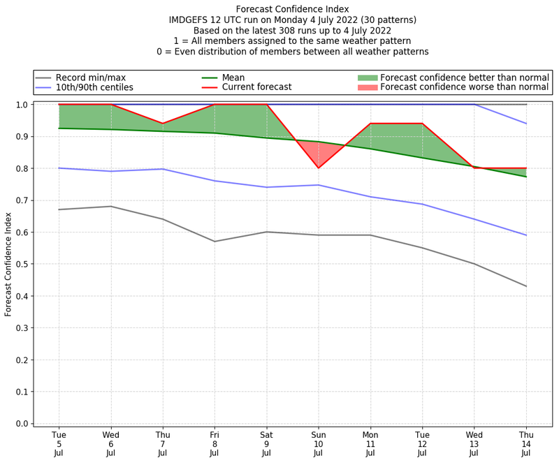 | Weather patterns typically associated with pre-monsoon tendencies over India are most likely Weather patterns 12, 13, 14, 15 and 22 (pre-monsoon) | |