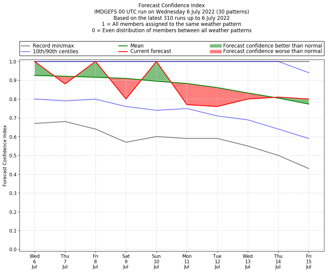 | Weather patterns typically associated with pre-monsoon tendencies over India are most likely Weather patterns 12, 13, 14, 15 and 22 (pre-monsoon) | |