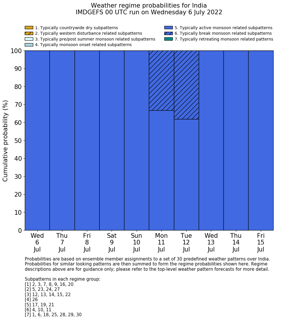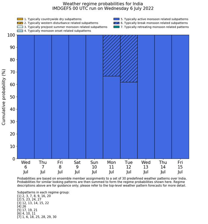 | Weather patterns typically associated with break monsoon tendencies over India are most likely Weather patterns 4, 10 and 11 (break) | |