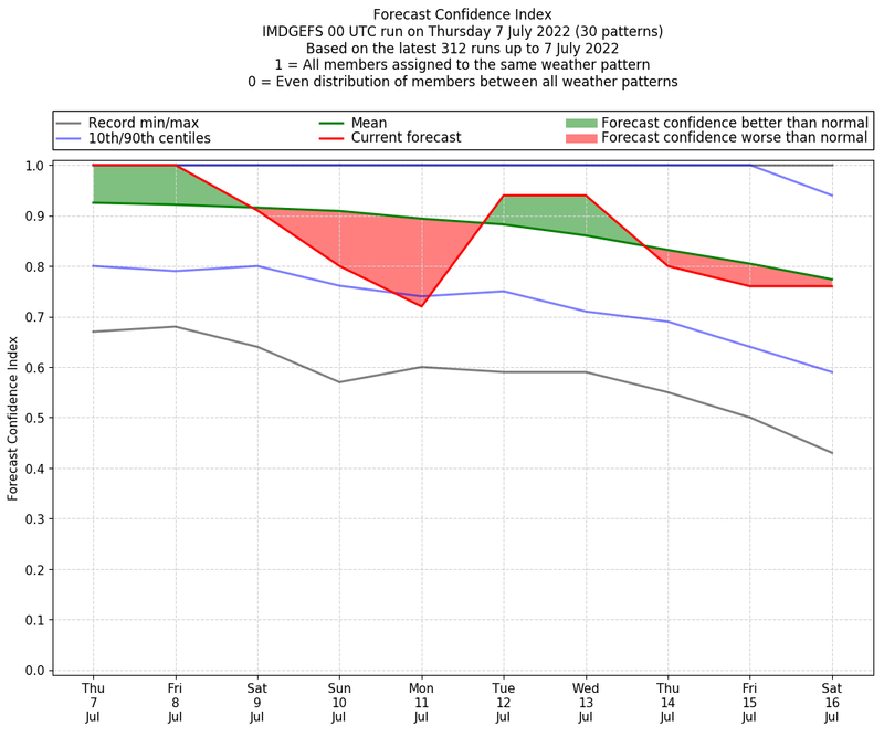 | Weather patterns typically associated with break monsoon tendencies over India are most likely Weather patterns 4, 10 and 11 (break) | |