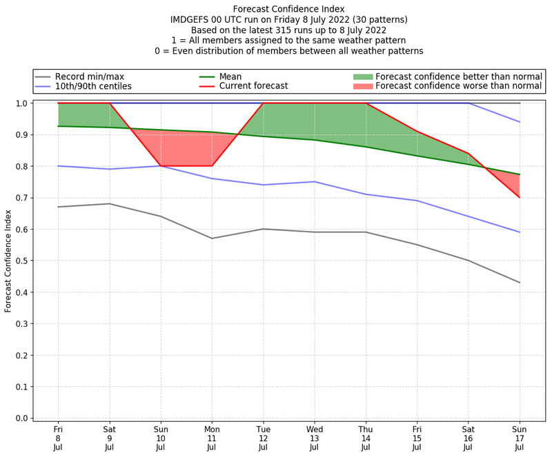 | Weather patterns typically associated with pre-monsoon tendencies over India are most likely Weather patterns 12, 13, 14, 15 and 22 (pre-monsoon) | |