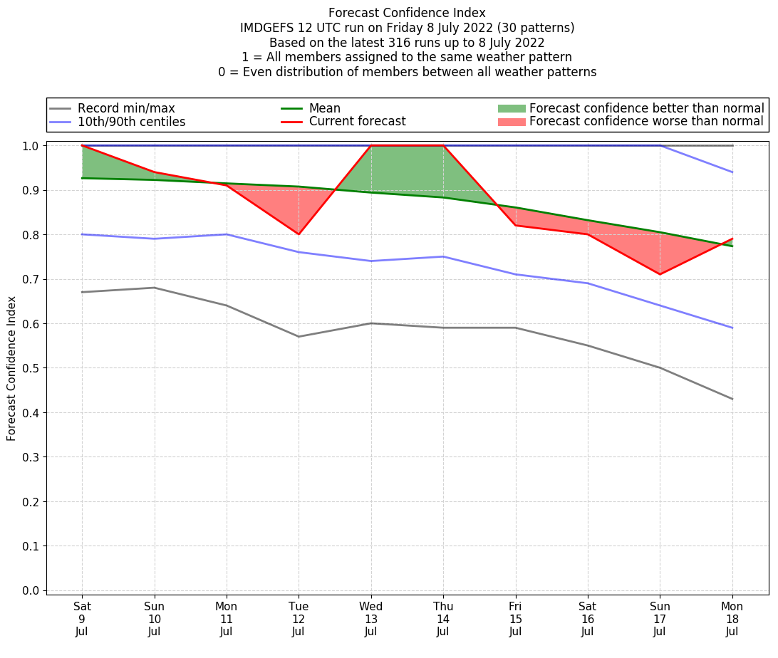 | Weather patterns typically associated with pre-monsoon tendencies over India are most likely Weather patterns 12, 13, 14, 15 and 22 (pre-monsoon) | |