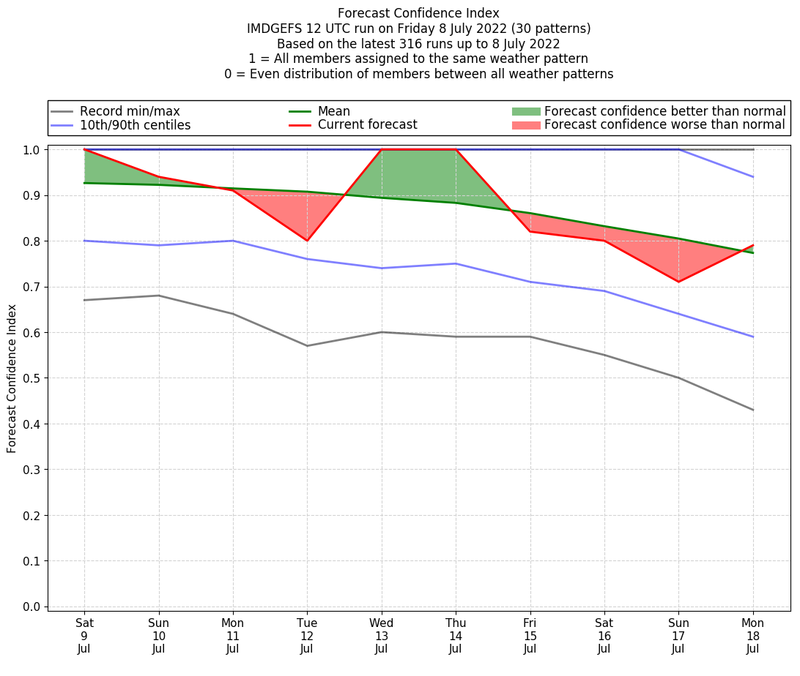 | Weather patterns typically associated with break monsoon tendencies over India are most likely Weather patterns 4, 10 and 11 (break) | |