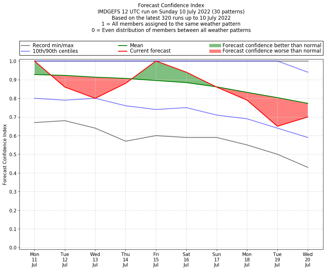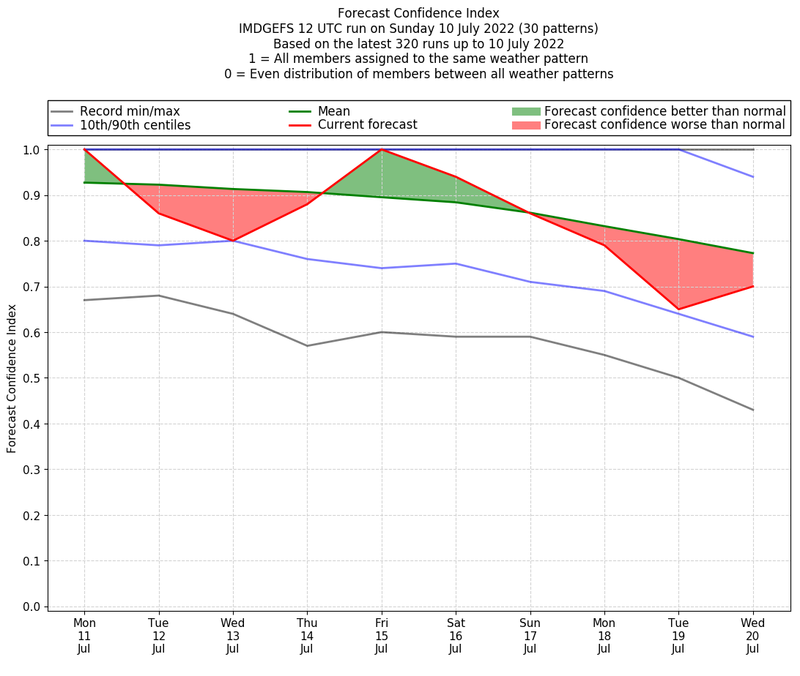| Weather patterns typically associated with break monsoon tendencies over India are most likely Weather patterns 4, 10 and 11 (break) | |