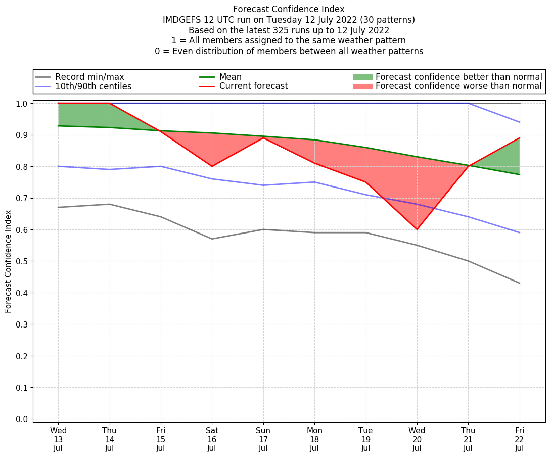 | Weather patterns typically associated with pre-monsoon tendencies over India are most likely Weather patterns 12, 13, 14, 15 and 22 (pre-monsoon) | |