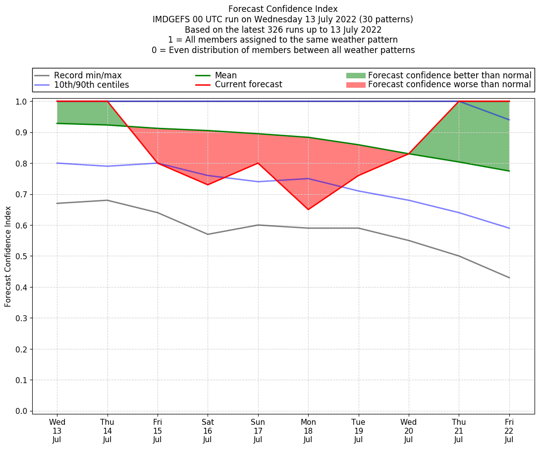 | Latest model run (13/00 UTC) | 100% | 100% | 100% | 100% | 100% | 62% | 86% | 95% | 100% | 100% |