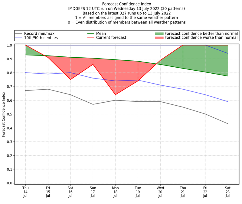 | Weather patterns typically associated with pre-monsoon tendencies over India are most likely Weather patterns 12, 13, 14, 15 and 22 (pre-monsoon) | |