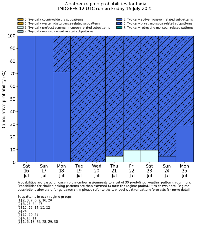 | Weather patterns typically associated with break monsoon tendencies over India are most likely Weather patterns 4, 10 and 11 (break) | |