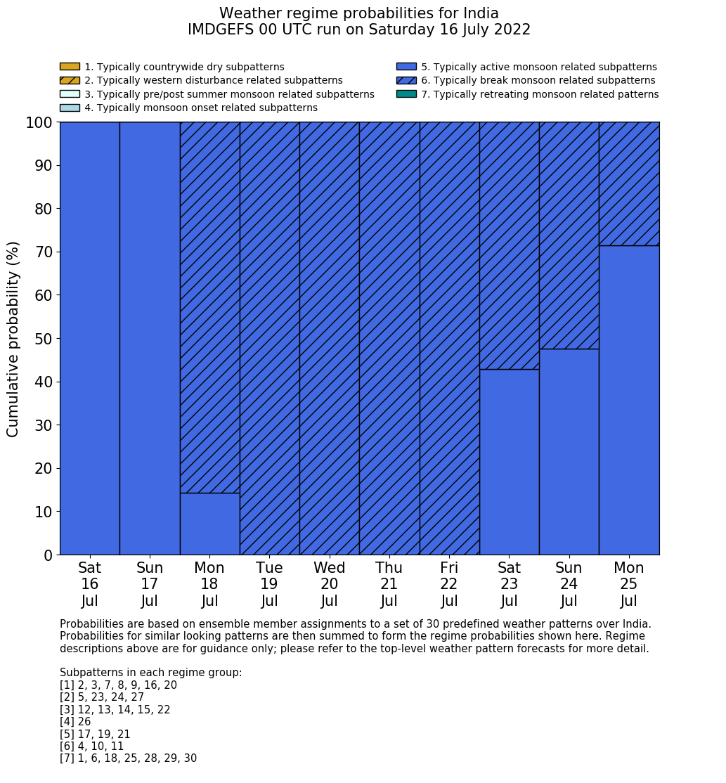 | Weather patterns typically associated with break monsoon tendencies over India are most likely Weather patterns 4, 10 and 11 (break) | |