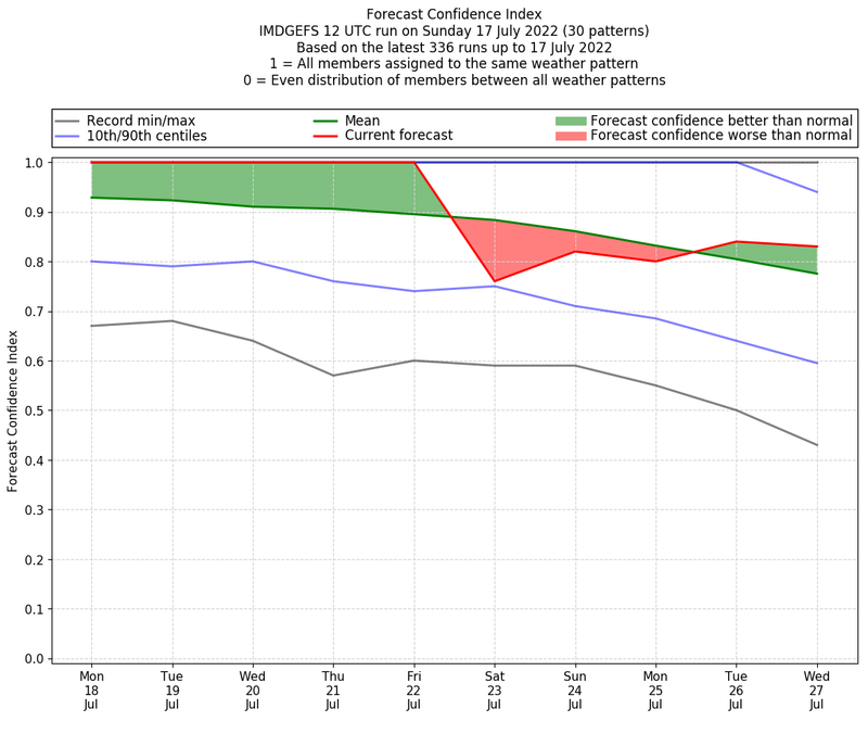 | Weather patterns typically associated with pre-monsoon tendencies over India are most likely Weather patterns 12, 13, 14, 15 and 22 (pre-monsoon) | |