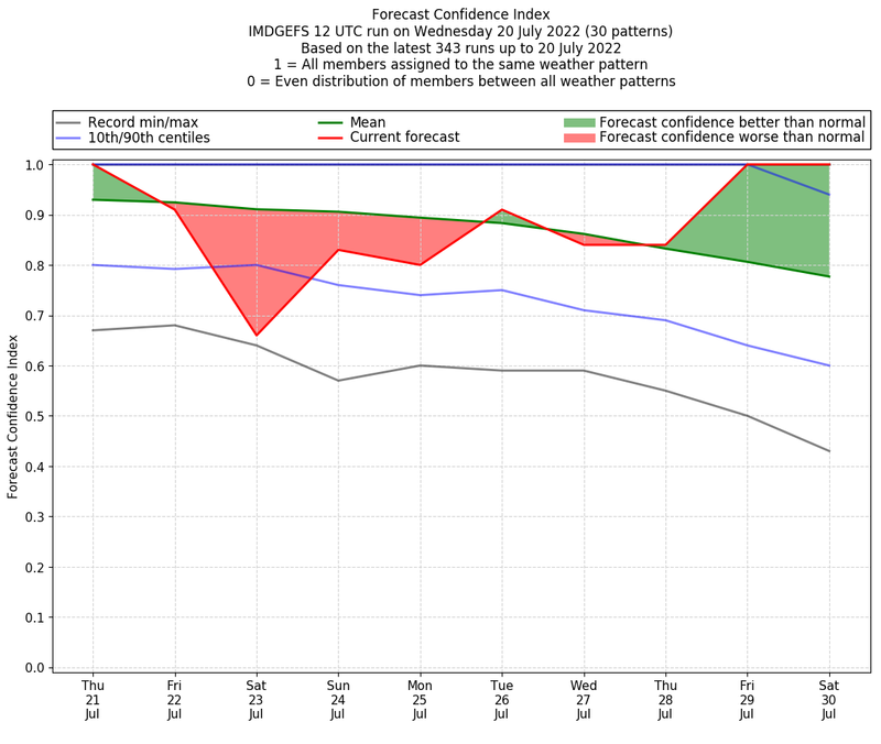| Weather patterns typically associated with pre-monsoon tendencies over India are most likely Weather patterns 12, 13, 14, 15 and 22 (pre-monsoon) | |