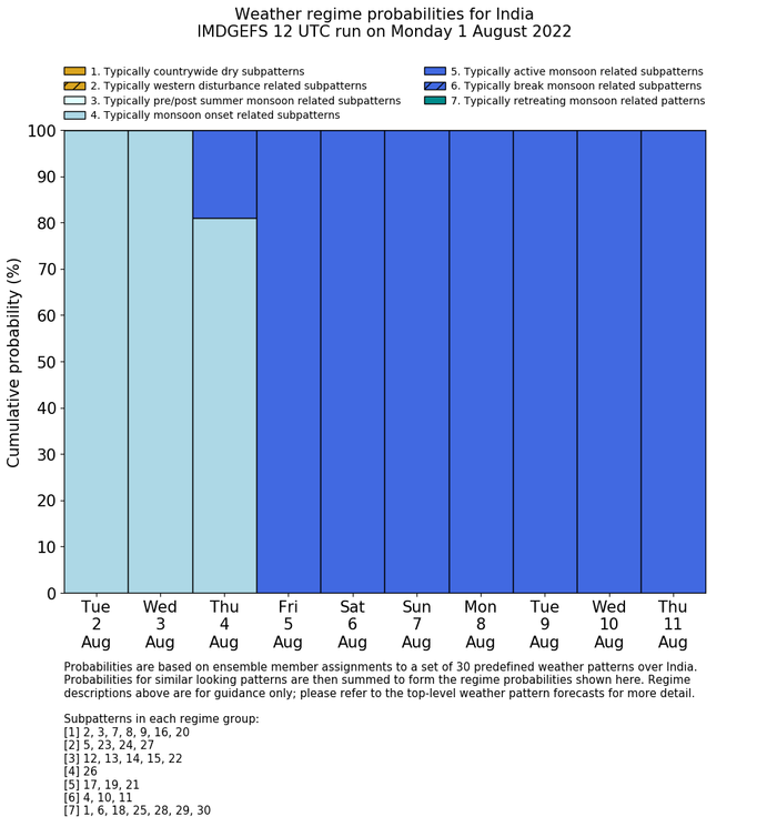 | Weather patterns typically associated with break monsoon tendencies over India are most likely Weather patterns 4, 10 and 11 (break) | |