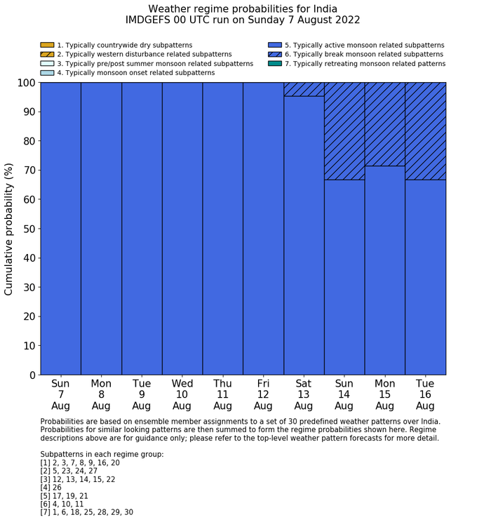 | Weather patterns typically associated with break monsoon tendencies over India are most likely Weather patterns 4, 10 and 11 (break) | |