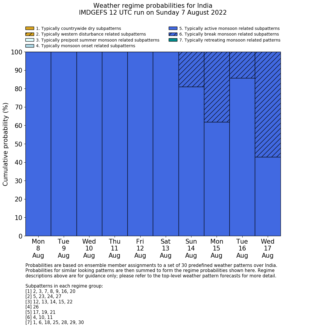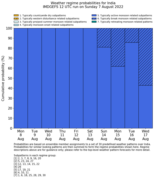 | Weather patterns typically associated with break monsoon tendencies over India are most likely Weather patterns 4, 10 and 11 (break) | |