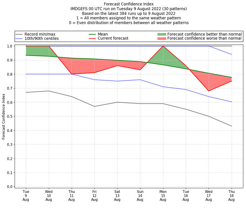 | Weather patterns typically associated with pre-monsoon tendencies over India are most likely Weather patterns 12, 13, 14, 15 and 22 (pre-monsoon) | |