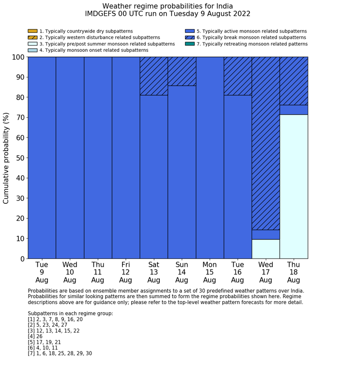 | Weather patterns typically associated with break monsoon tendencies over India are most likely Weather patterns 4, 10 and 11 (break) | |