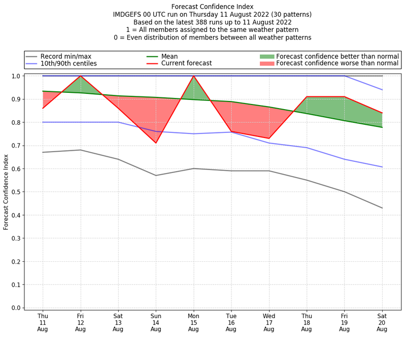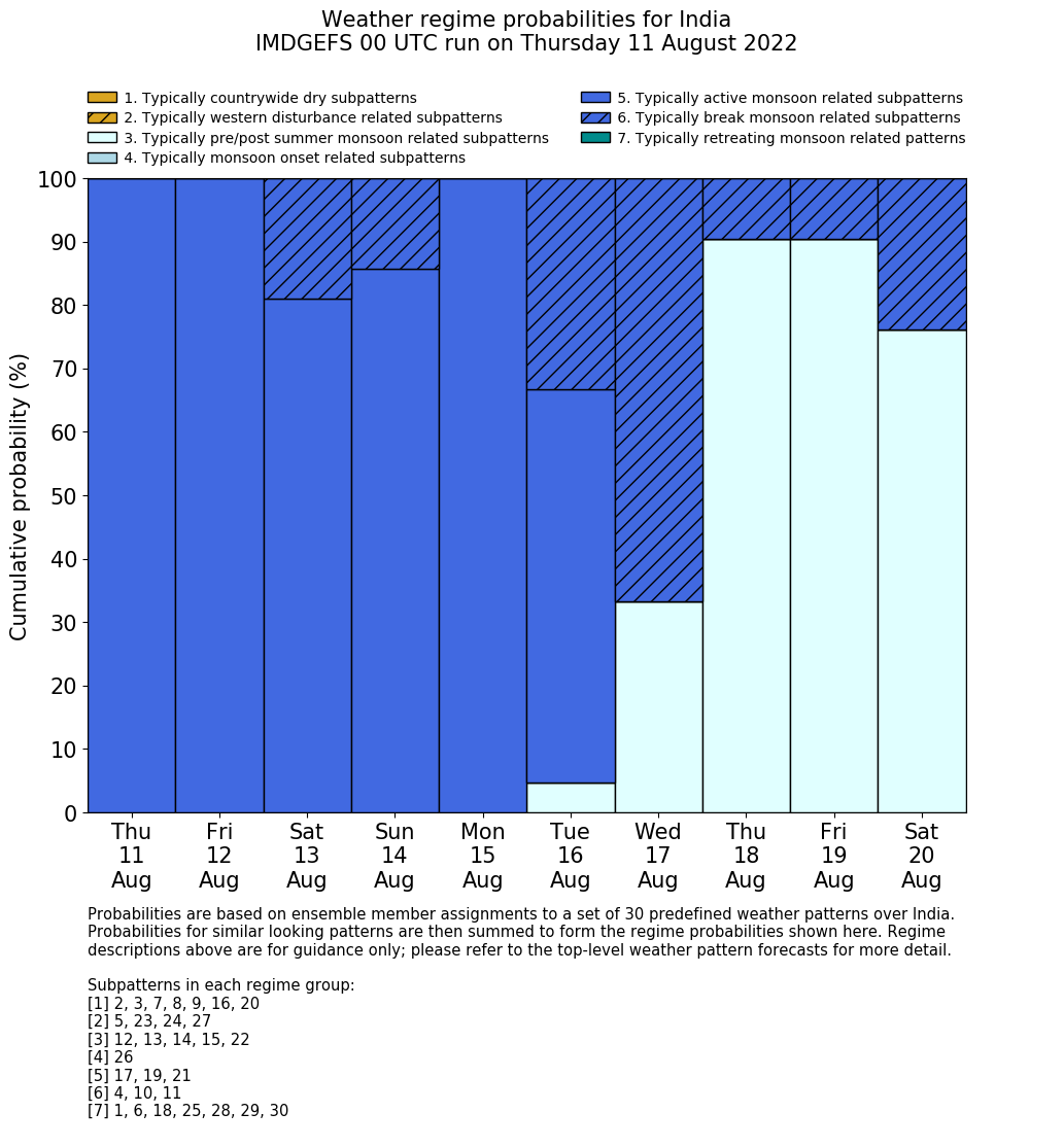 | Weather patterns typically associated with break monsoon tendencies over India are most likely Weather patterns 4, 10 and 11 (break) | |