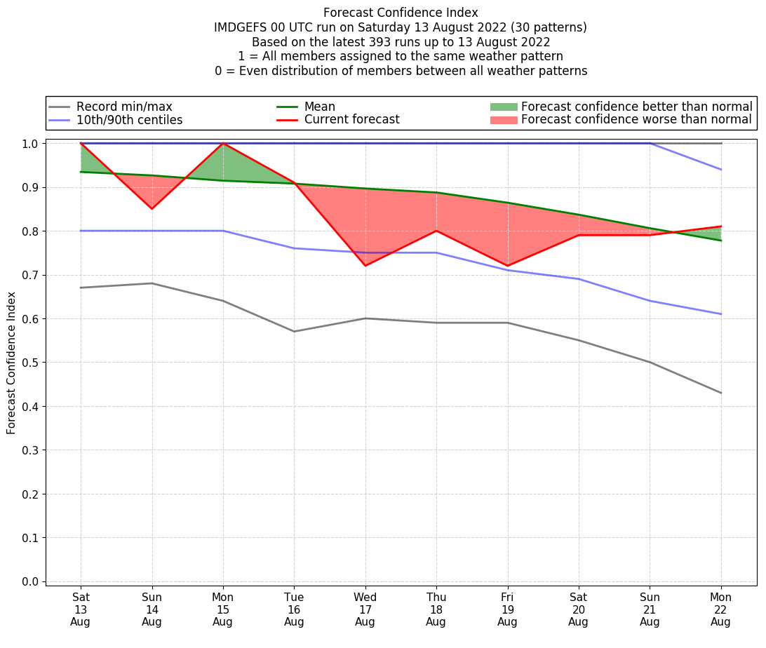 | Latest model run (13/00 UTC) | 100% | 95% | 100% | 90% | 86% | 52% | 67% | 86% | 86% | 67% |