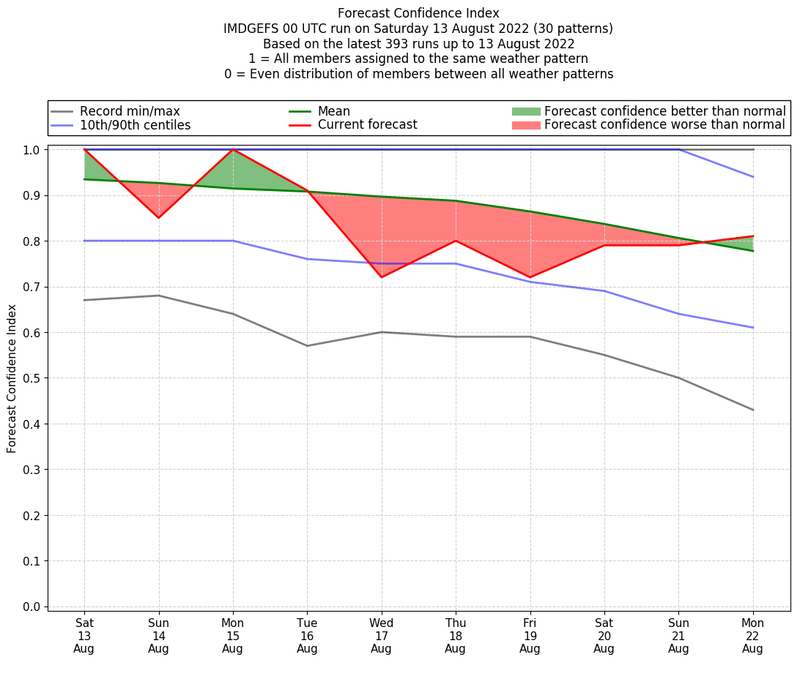| Weather patterns typically associated with contrywide dry period tendencies over India are most likely Weather patterns 2, 3, 7, 8, 9, 16 and 20 (countrywide winter dry period) | |