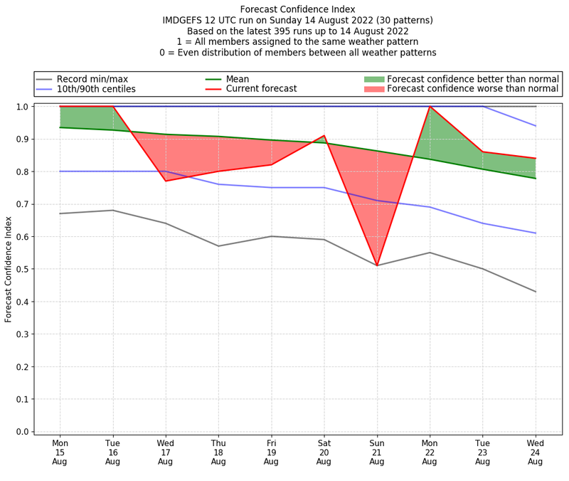 | Weather patterns typically associated with break monsoon tendencies over India are most likely Weather patterns 4, 10 and 11 (break) | |