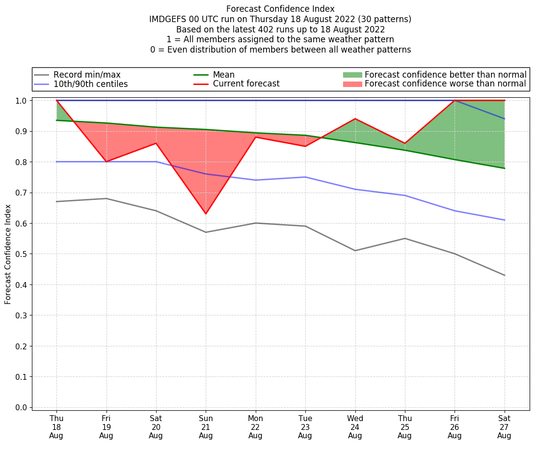 | Weather patterns typically associated with contrywide dry period tendencies over India are most likely Weather patterns 2, 3, 7, 8, 9, 16 and 20 (countrywide winter dry period) | |