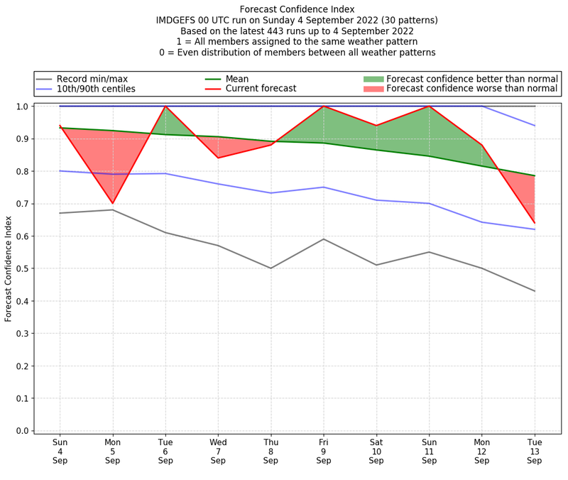 | Weather patterns typically associated with break monsoon tendencies over India are most likely Weather patterns 4, 10 and 11 (break) | |