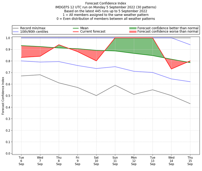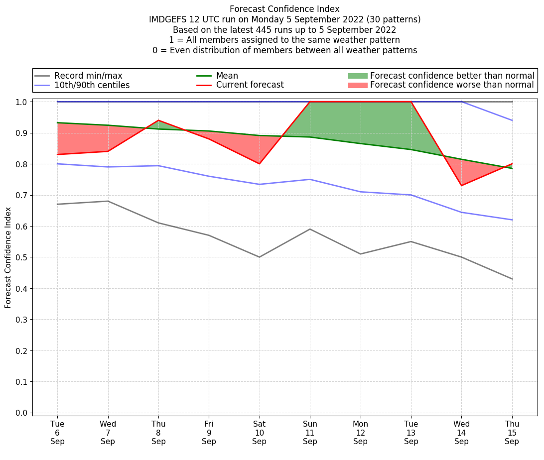 | Weather patterns typically associated with break monsoon tendencies over India are most likely Weather patterns 4, 10 and 11 (break) | |