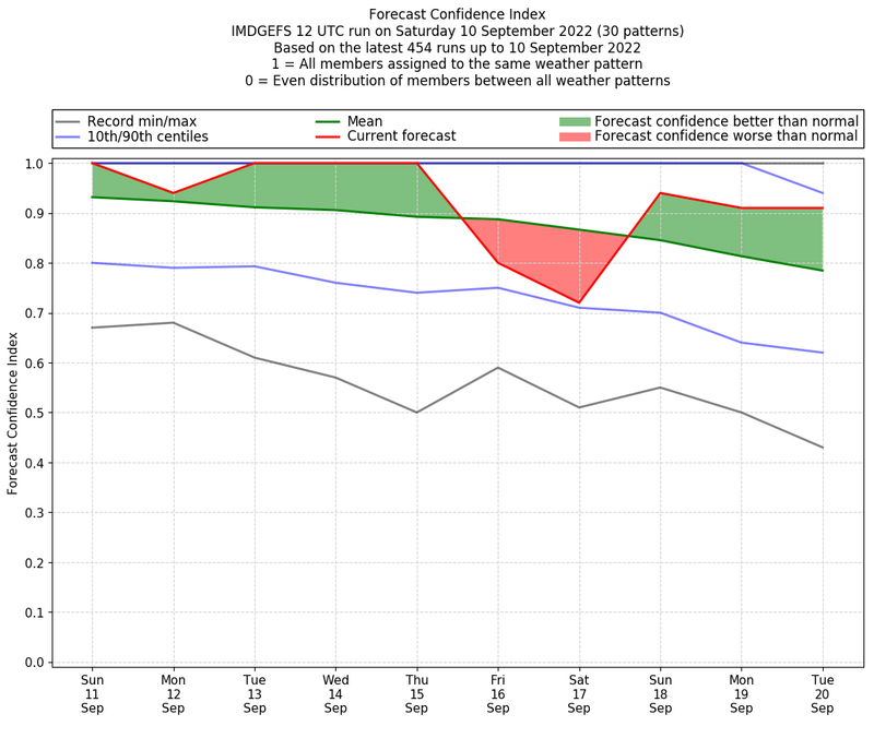 | Weather patterns typically associated with break monsoon tendencies over India are most likely Weather patterns 4, 10 and 11 (break) | |