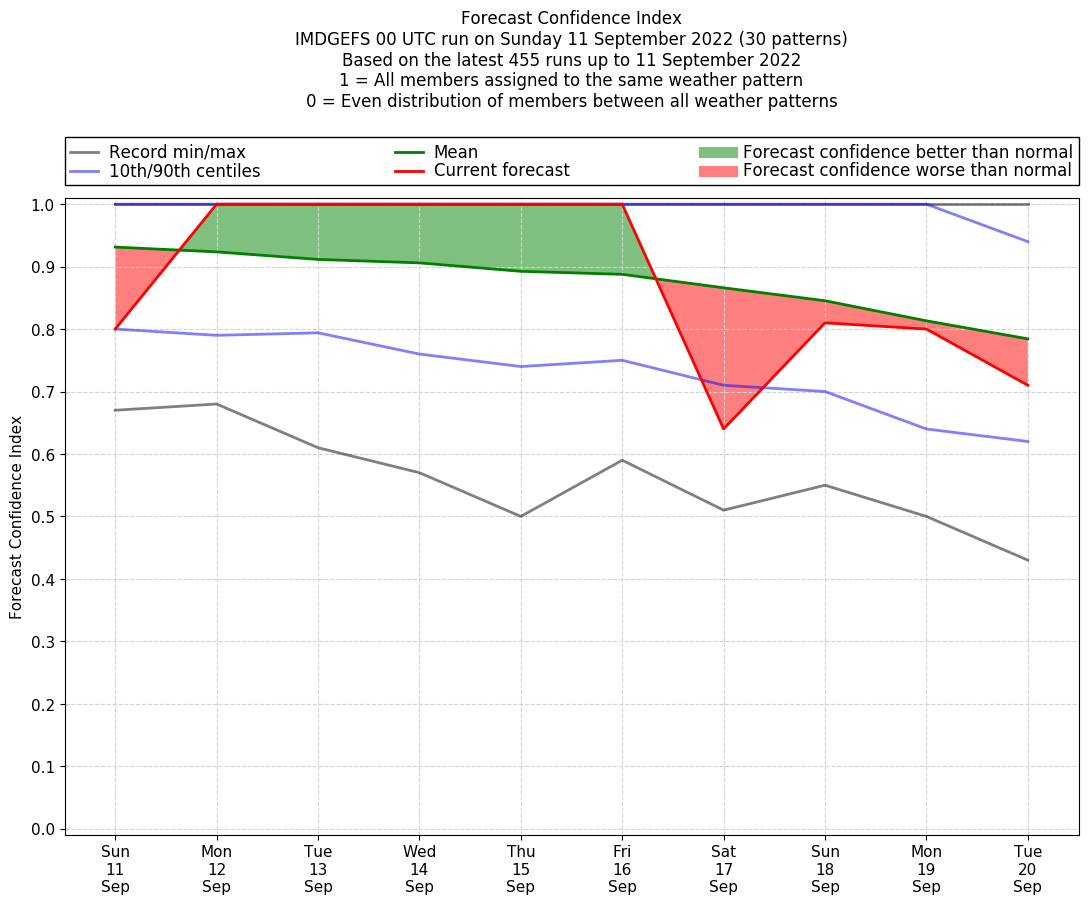 | Weather patterns typically associated with break monsoon tendencies over India are most likely Weather patterns 4, 10 and 11 (break) | |