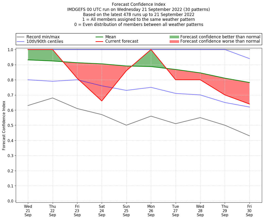 | Weather patterns typically associated with contrywide dry period tendencies over India are most likely Weather patterns 2, 3, 7, 8, 9, 16 and 20 (countrywide winter dry period) | |