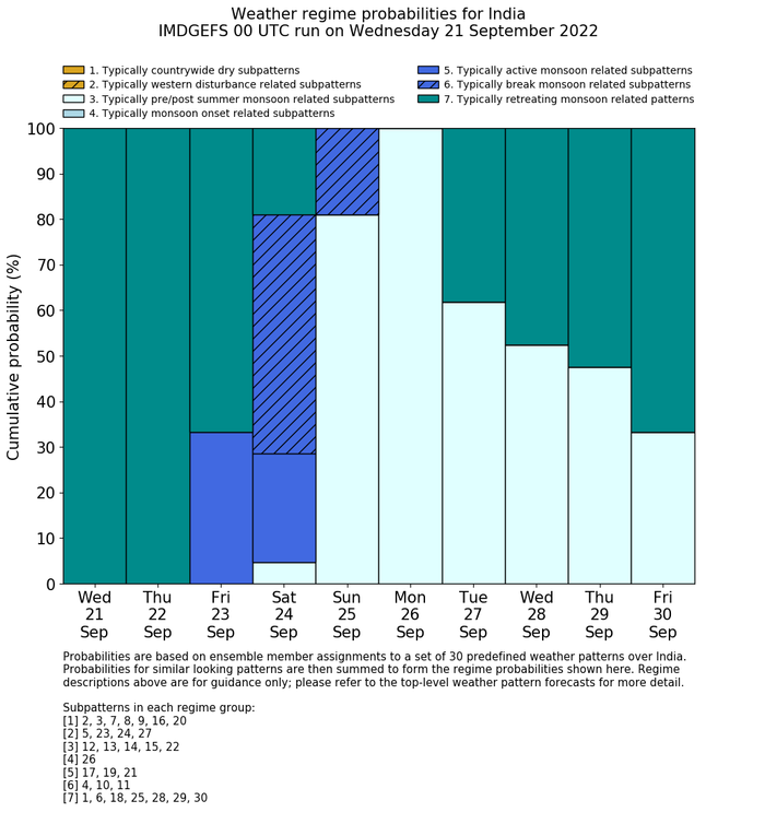 | Pattern 30 | 19% | 24% | Retreating Monsoon | 0.2% | 5.0% | 10.6% |