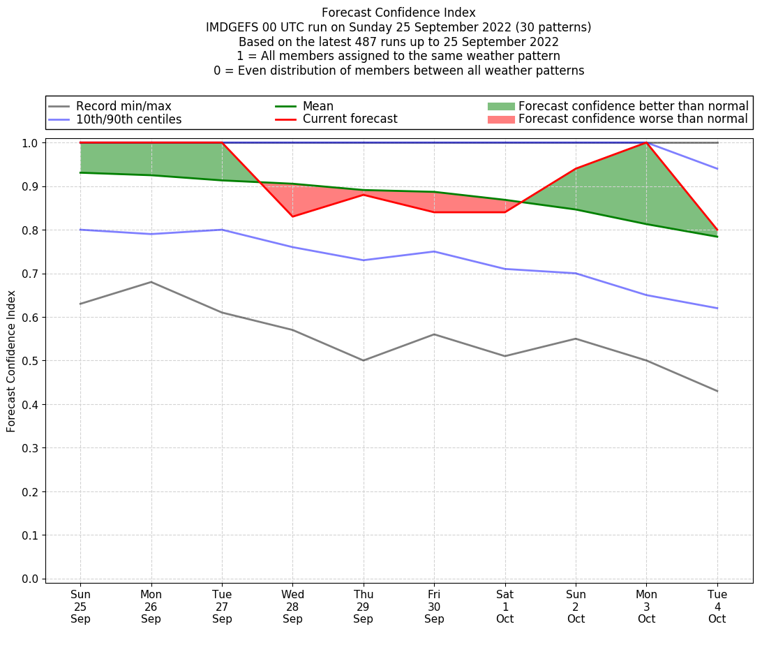 | Weather patterns typically associated with contrywide dry period tendencies over India are most likely Weather patterns 2, 3, 7, 8, 9, 16 and 20 (countrywide winter dry period) | |