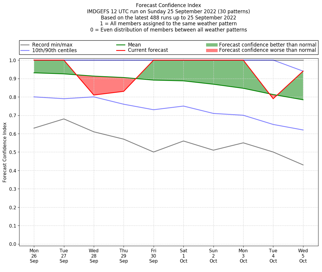 | Weather patterns typically associated with summer monsoon tendencies over India are most likely Weather patterns 12, 13, 15, 15 and 22 (pre/post summer monsoon); 26 (onset); 17, 19 and 21 (active); 4, 10 and 11 (break) | |