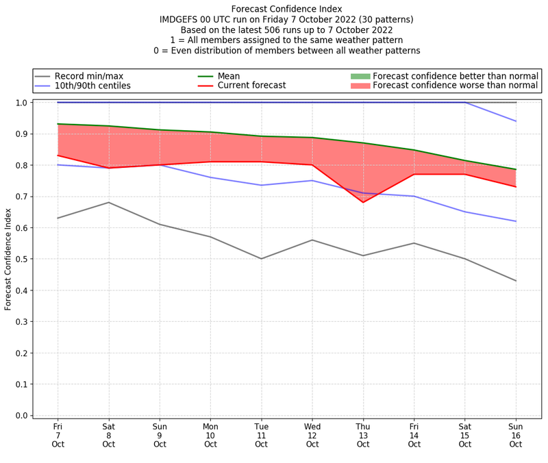 | Weather patterns typically associated with contrywide dry period tendencies over India are most likely Weather patterns 2, 3, 7, 8, 9, 16 and 20 (countrywide winter dry period) | |