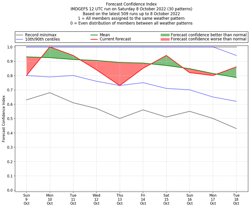 | Weather patterns typically associated with pre-monsoon tendencies over India are most likely Weather patterns 12, 13, 14, 15 and 22 (pre-monsoon) | |
