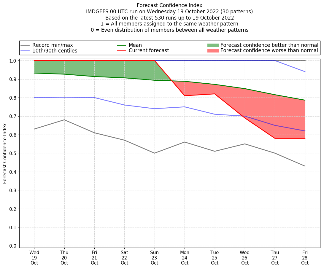 | Weather patterns typically associated with contrywide dry period tendencies over India are most likely Weather patterns 2, 3, 7, 8, 9, 16 and 20 (countrywide winter dry period) | |