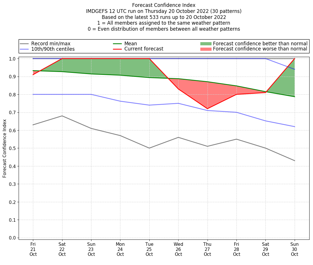 | Weather patterns typically associated with contrywide dry period tendencies over India are most likely Weather patterns 2, 3, 7, 8, 9, 16 and 20 (countrywide winter dry period) | |
