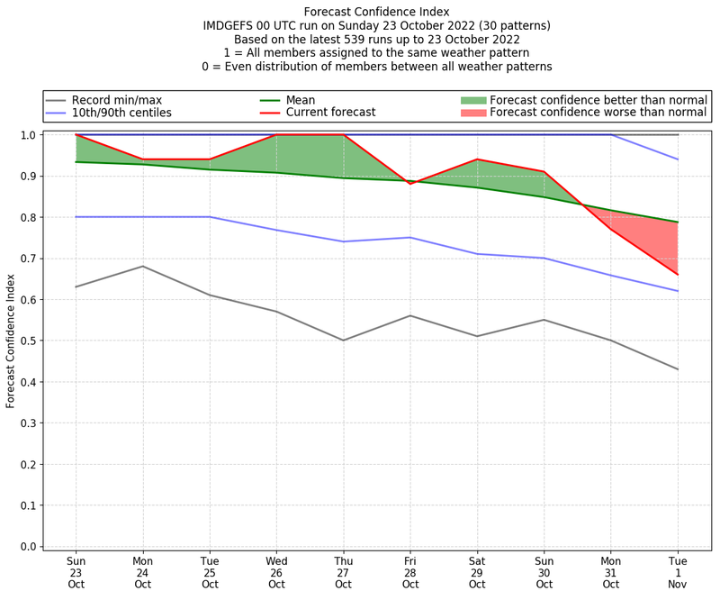 | Weather patterns typically associated with contrywide dry period tendencies over India are most likely Weather patterns 2, 3, 7, 8, 9, 16 and 20 (countrywide winter dry period) | |