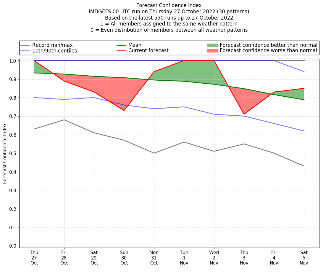 | Weather patterns typically associated with contrywide dry period tendencies over India are most likely Weather patterns 2, 3, 7, 8, 9, 16 and 20 (countrywide winter dry period) | |