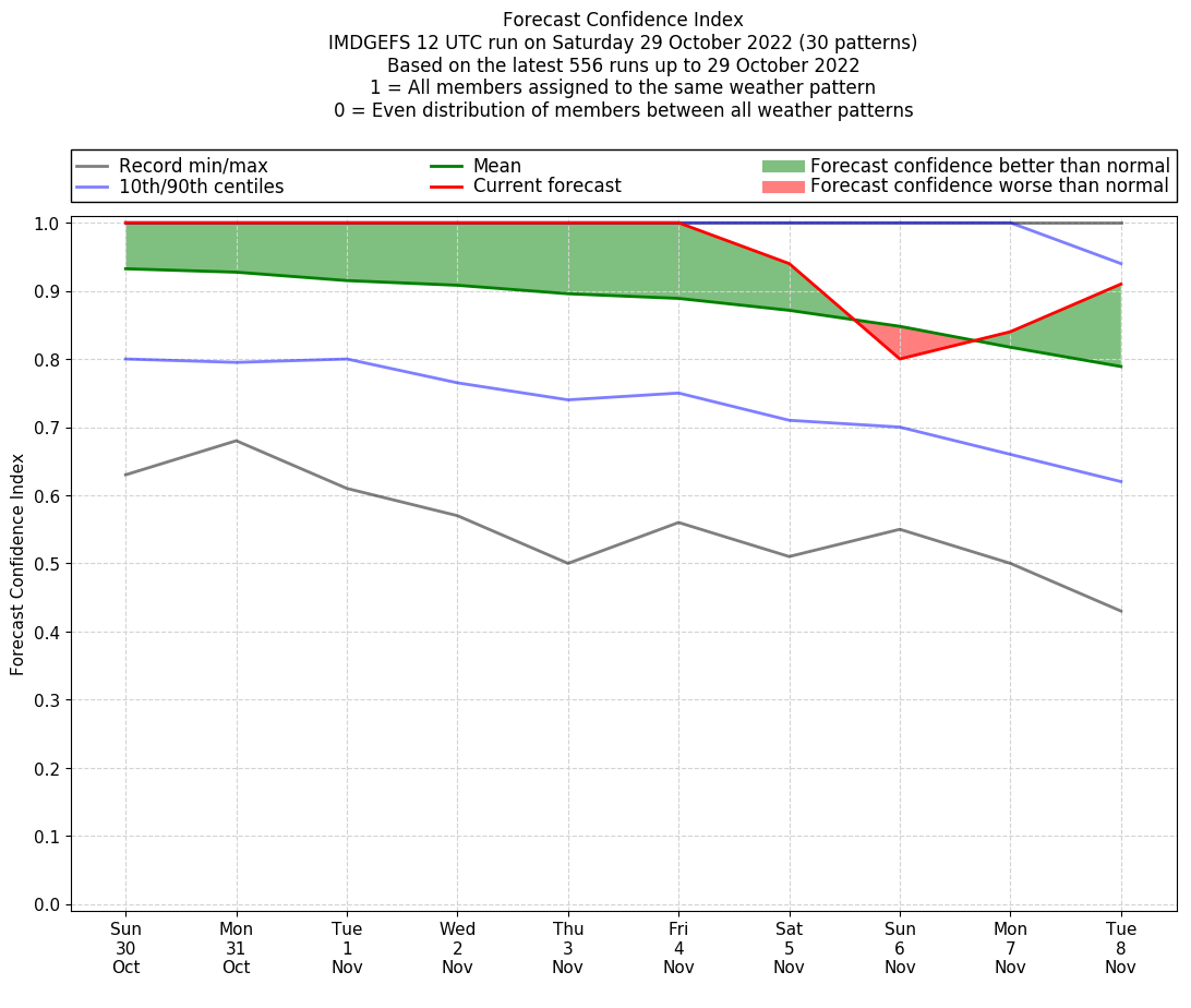 | Weather patterns typically associated with contrywide dry period tendencies over India are most likely Weather patterns 2, 3, 7, 8, 9, 16 and 20 (countrywide winter dry period) | |