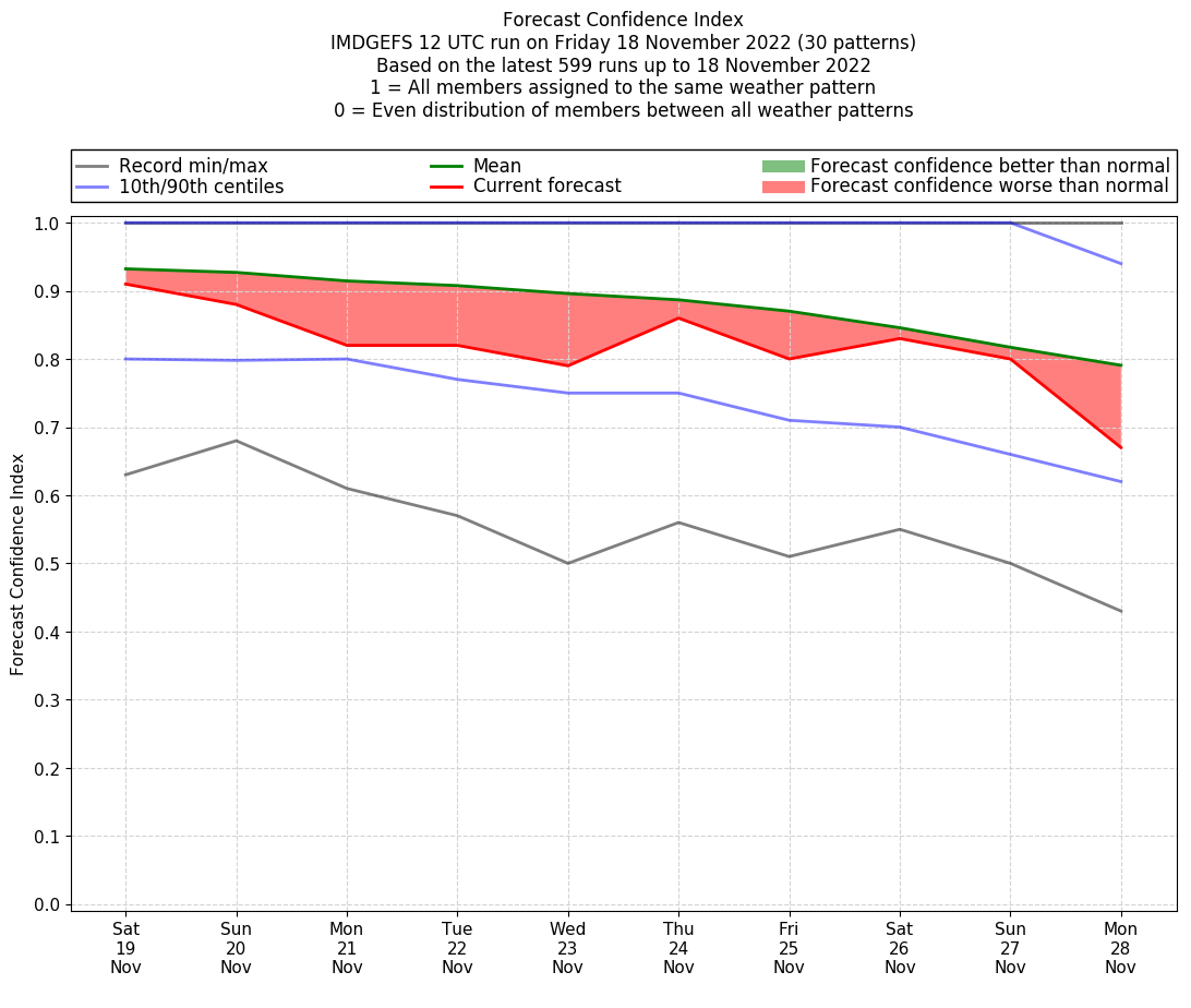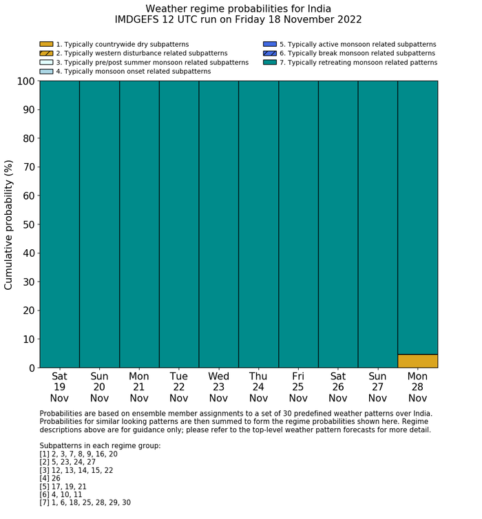 | Weather patterns typically associated with contrywide dry period tendencies over India are most likely Weather patterns 2, 3, 7, 8, 9, 16 and 20 (countrywide winter dry period) | |