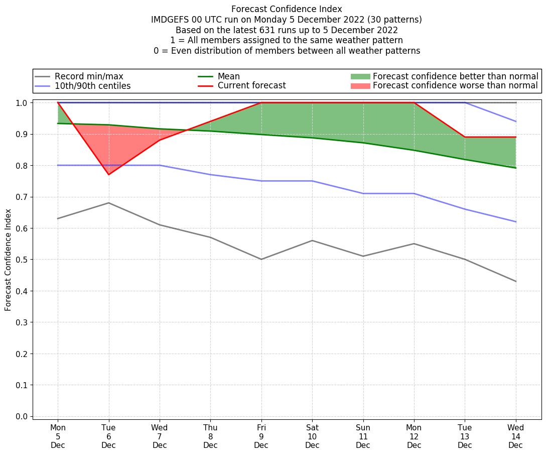 | Weather patterns typically associated with contrywide dry period tendencies over India are most likely Weather patterns 2, 3, 7, 8, 9, 16 and 20 (countrywide winter dry period) | |