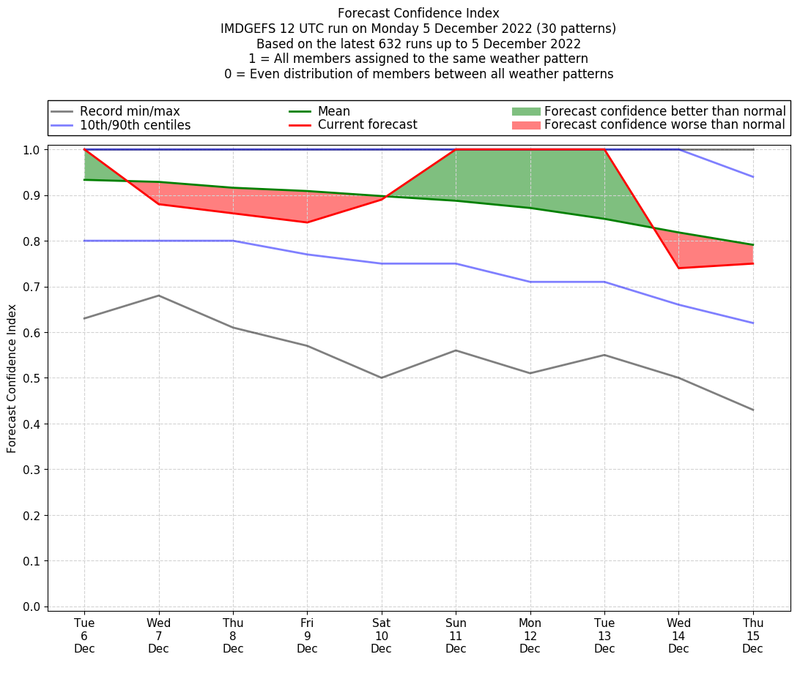 | Weather patterns typically associated with contrywide dry period tendencies over India are most likely Weather patterns 2, 3, 7, 8, 9, 16 and 20 (countrywide winter dry period) | |