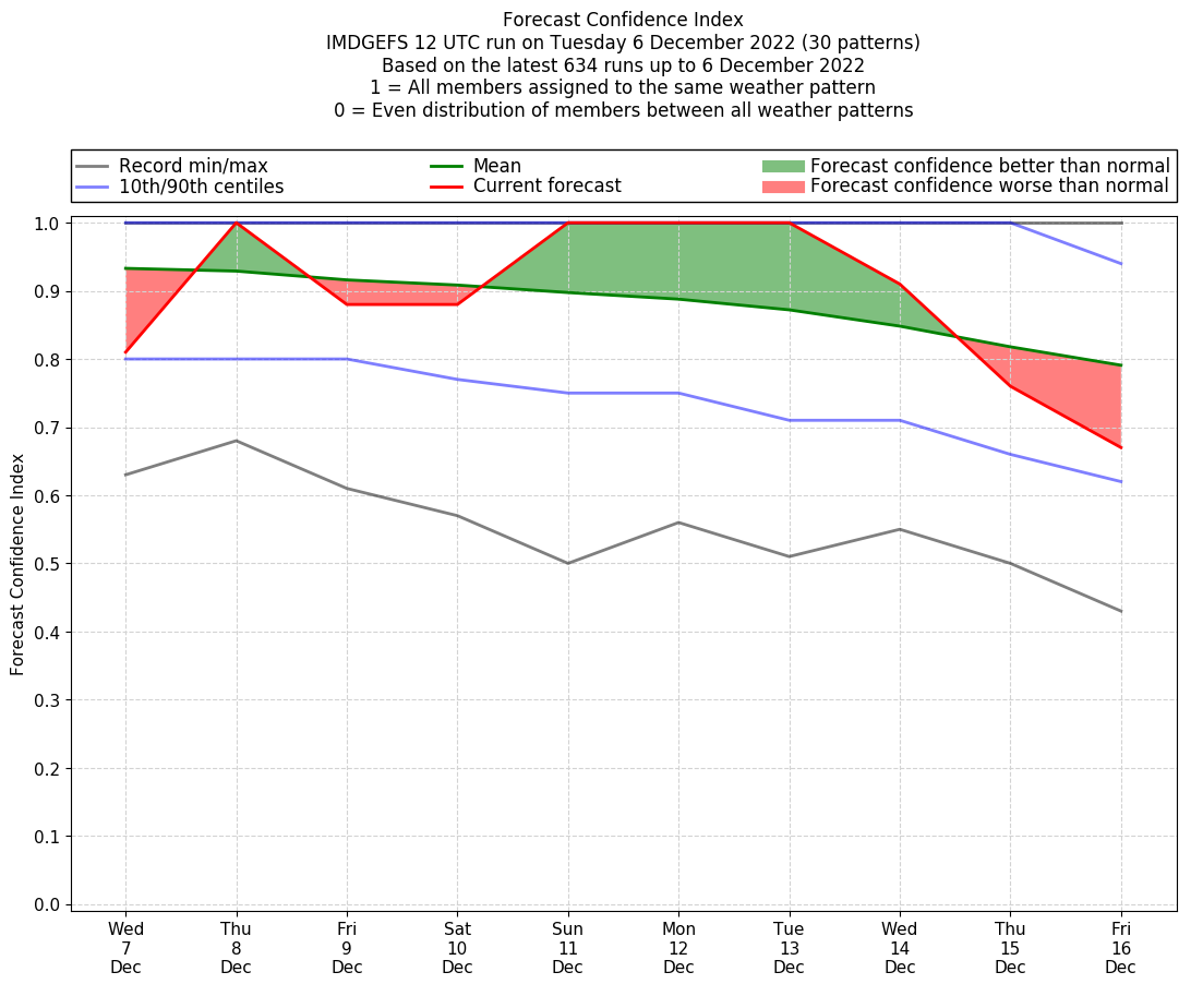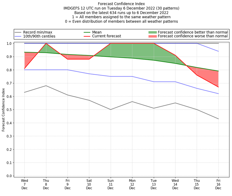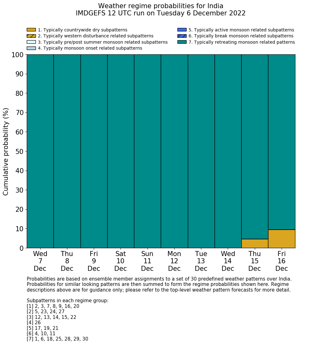 | Weather patterns typically associated with contrywide dry period tendencies over India are most likely Weather patterns 2, 3, 7, 8, 9, 16 and 20 (countrywide winter dry period) | |
