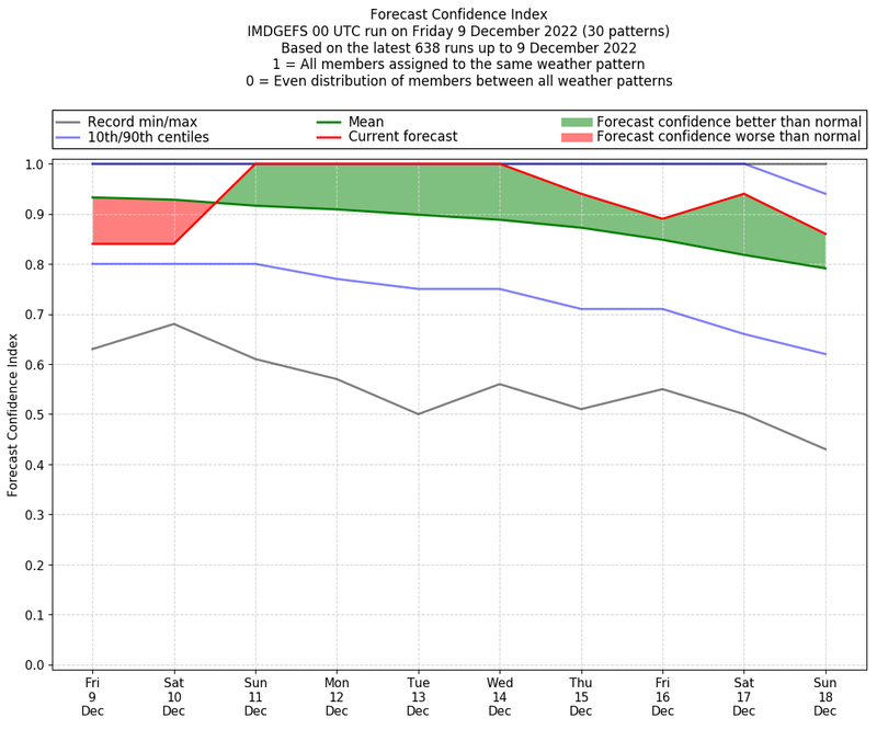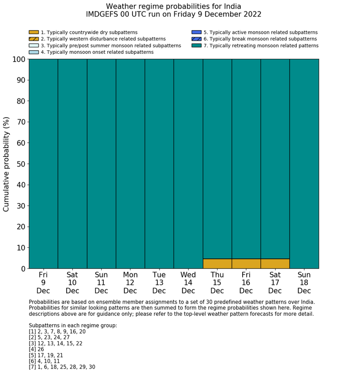 | Weather patterns typically associated with contrywide dry period tendencies over India are most likely Weather patterns 2, 3, 7, 8, 9, 16 and 20 (countrywide winter dry period) | |